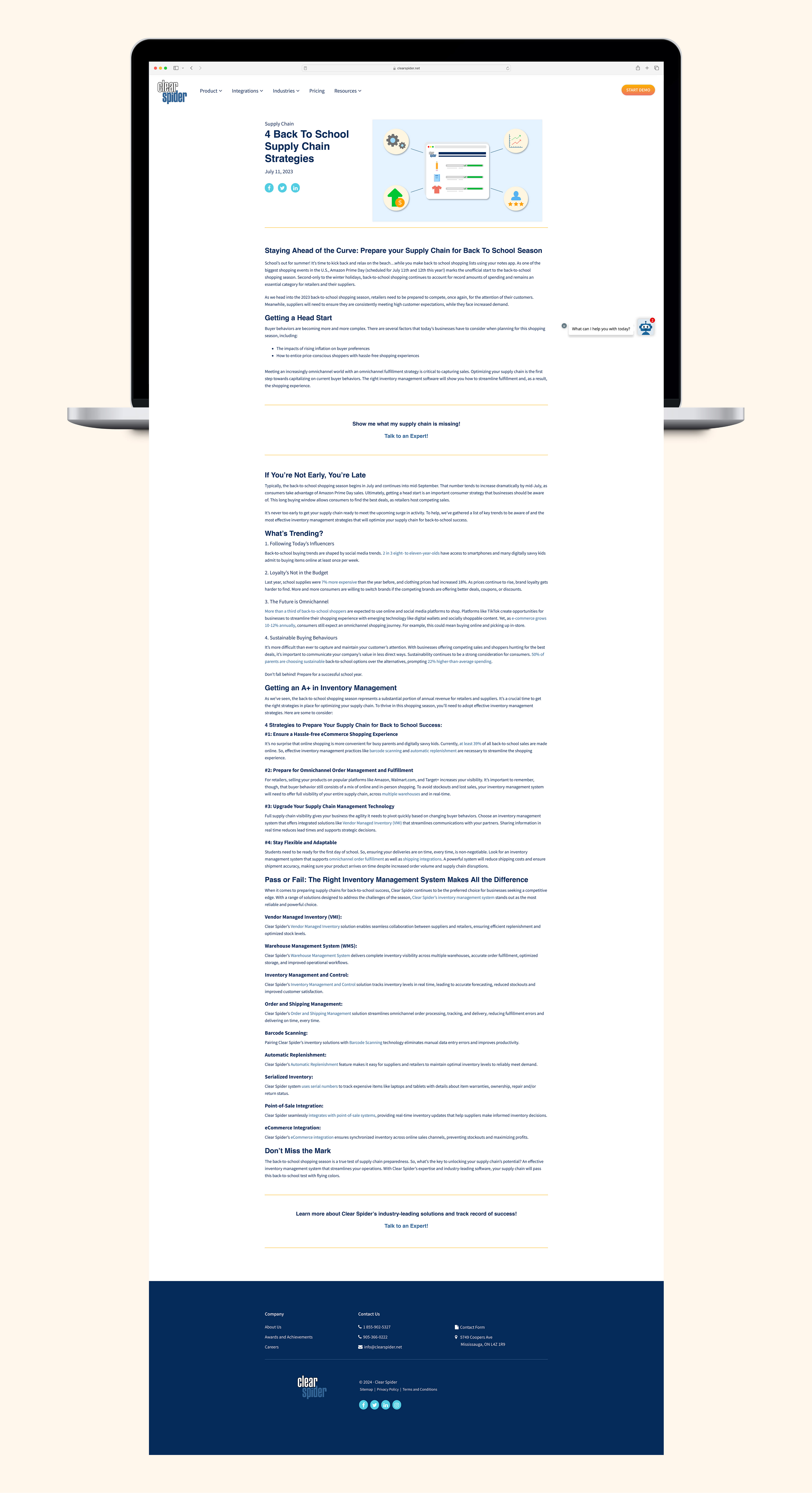 Over 100,000 different companies use Clear Spider on a daily basis for inventory management. As their designer, I designed for blog and social media which were posted on the company's marketing website and their social media channels. Different responsive variations were made for different design mediums.
